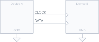 With synchronous serial, things are more straightforward. We are explicitly told when we should read the data line. To do this, another wire is added (for a total of 2 wires). This other wire, called the clock (CLK) line, tells us when to read the data line.
