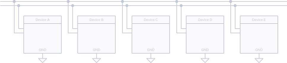 While a bus topology like the one shown is very powerful, it requires electrical and protocol-level complexity to deal with the issues raised above. It's not ideal for very cheap and simple devices.